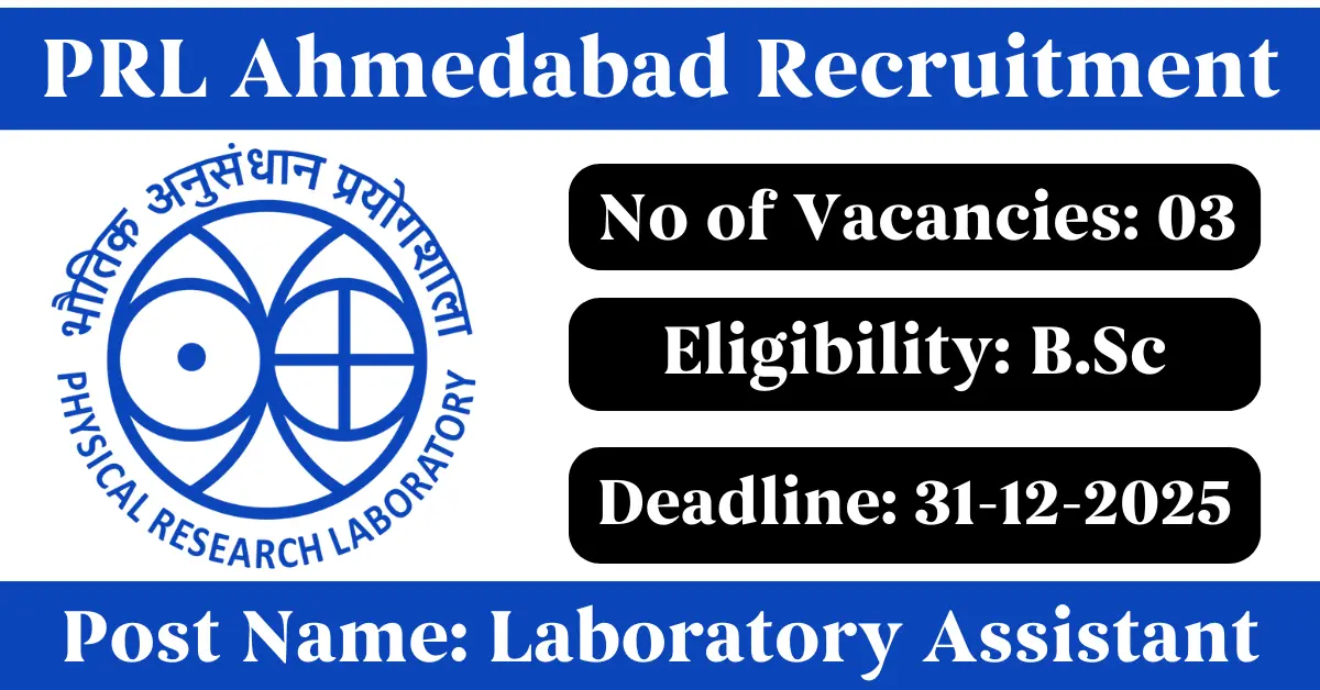 PRL Ahmedabad Recruitment 2025: Apply for 3 Laboratory Assistant vacancies. Physical Research Laboratory invited applications from eligible and interested candidates to fill up Laboratory Assistant Posts through PRL Ahmedabad official notification December 2025. Job seekers who are looking for a career in Ahmedabad – Gujarat Government can make use of this opportunity. Interested candidates can Apply Online on or before 31-Dec-2025