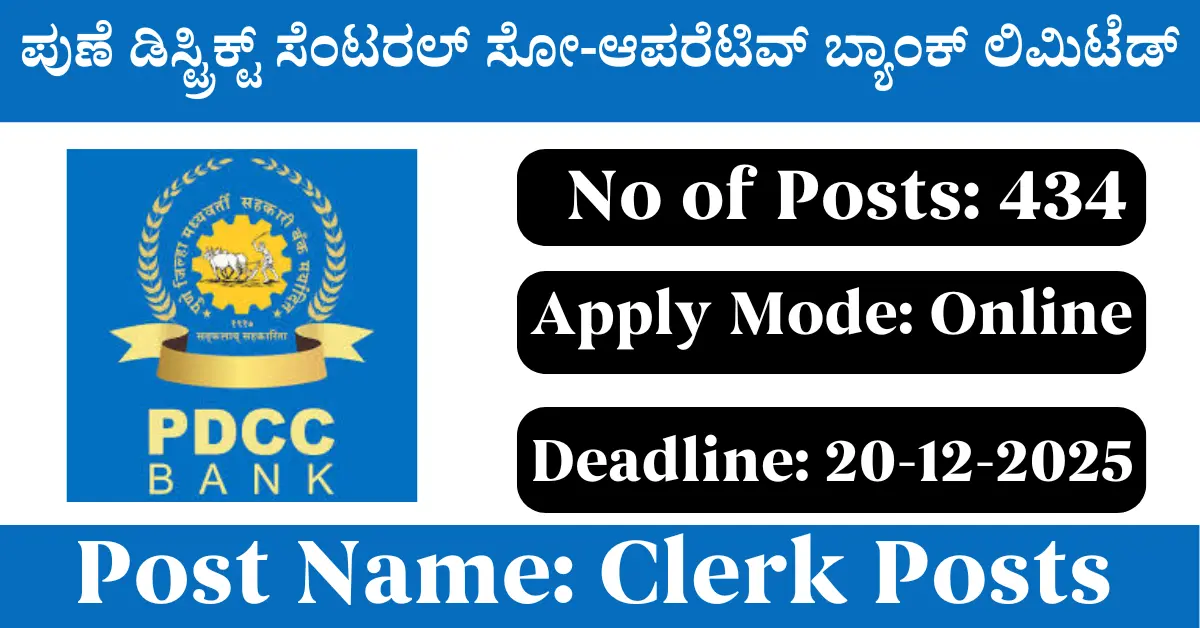 Pune DCCB Recruitment 2025: Apply for 434 Clerk vacancies. Pune District Central Co-Operative Bank Limited invited applications from eligible and interested candidates to fill up Clerk Posts through Pune DCCB official notification November 2025. Job seekers who are looking for a career in Pune – Maharashtra Government can make use of this opportunity. Interested candidates can Apply Online on or before 20-Dec-2025