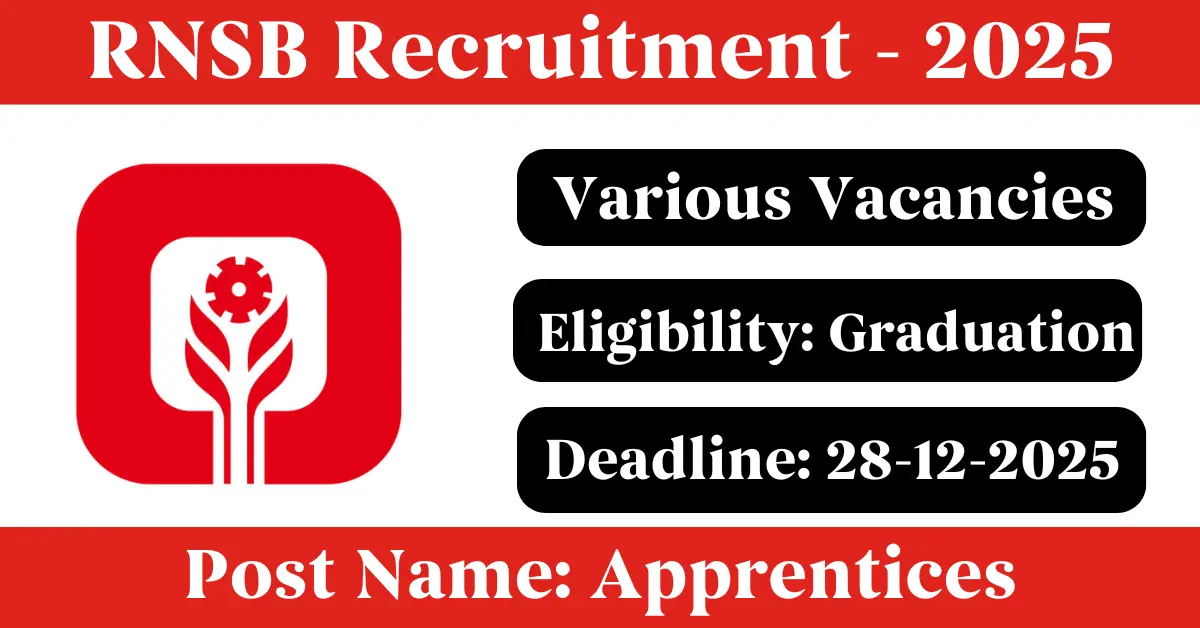 RNSB Recruitment 2025: Apply for Various Apprentices vacancies. Rajkot Nagarik Sahakari Bank Ltd invited applications from eligible and interested candidates to fill up Apprentices Posts through RNSB official notification December 2025. Job seekers who are looking for a career in Rajkot – Gujarat Government can make use of this opportunity. Interested candidates can Apply Online on or before 28-Dec-2025