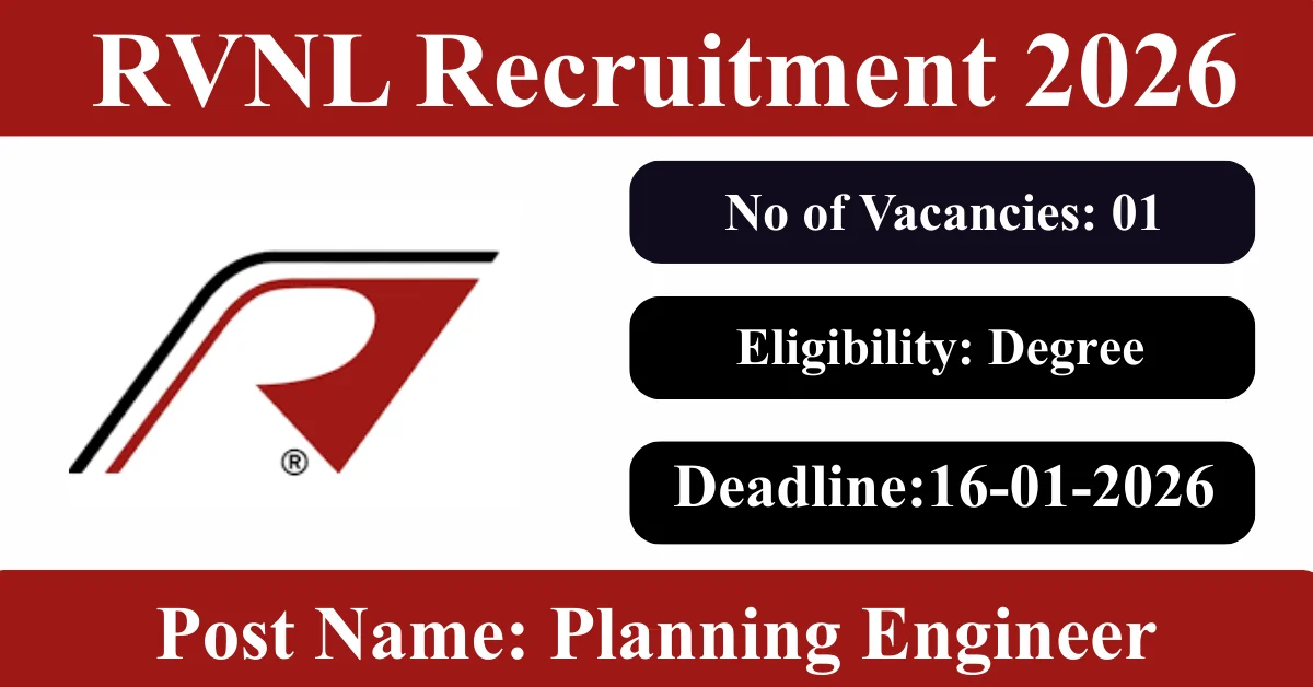 RVNL Recruitment 2026: Apply for 1 Planning Engineer vacancies. Rail Vikas Nigam Limited invited applications from eligible and interested candidates to fill up Planning Engineer Posts through RVNL official notification January 2026. Job seekers who are looking for a career in Gurgaon – Haryana Government can make use of this opportunity. Interested candidates can attend for Walk-in-interview on 16-Jan-2026