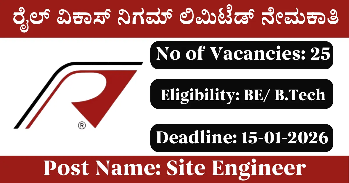 RVNL Recruitment 2025: Apply for 25 Site Engineer vacancies. Rail Vikas Nigam Limited invited applications from eligible and interested candidates to fill up Site Engineer Posts through RVNL official notification December 2025. Job seekers who are looking for a career in Uttar Pradesh Government can make use of this opportunity. Interested candidates can attend for Walk-in-interview on 15-Jan-2026