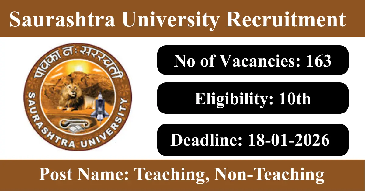Saurashtra University Recruitment 2026: Apply for 163 Teaching, Non-Teaching vacancies. Saurashtra University invited applications from eligible and interested candidates to fill up Teaching, Non-Teaching Posts through Saurashtra University official notification December 2025. Job seekers who are looking for a career in Rajkot – Gujarat Government can make use of this opportunity. Interested candidates can Apply Online/Offline on or before 18-Jan-2026
