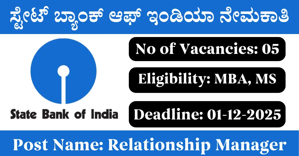 SBI Recruitment 2025: Apply for 5 Relationship Manager vacancies. State Bank of India invited applications from eligible and interested candidates to fill up Relationship Manager Posts through SBI official notification November 2025. Job seekers who are looking for a career in Mumbai – Maharashtra Government can make use of this opportunity. Interested candidates can Apply Online on or before 01-Dec-2025