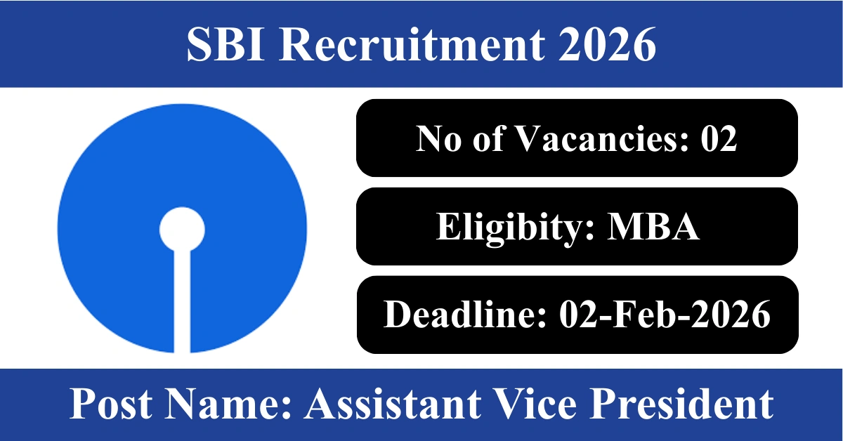 SBI Recruitment 2026: Apply for 2 Assistant Vice President vacancies. State Bank of India invited applications from eligible and interested candidates to fill up Assistant Vice President Posts through SBI official notification January 2026. Job seekers who are looking for a career in Mumbai – Maharashtra Government can make use of this opportunity. Interested candidates can Apply Online on or before 02-Feb-2026