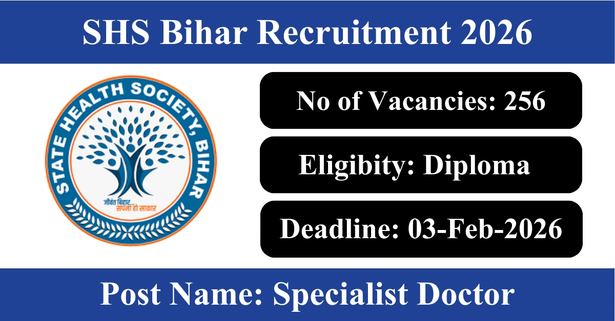 SHS Bihar Recruitment 2026: Apply for 256 Specialist Doctor vacancies. State Health Society Bihar invited applications from eligible and interested candidates to fill up Specialist Doctor Posts through SHS Bihar official notification January 2026. Job seekers who are looking for a career in Bihar Government can make use of this opportunity. Interested candidates can Apply Online on or before 03-Feb-2026