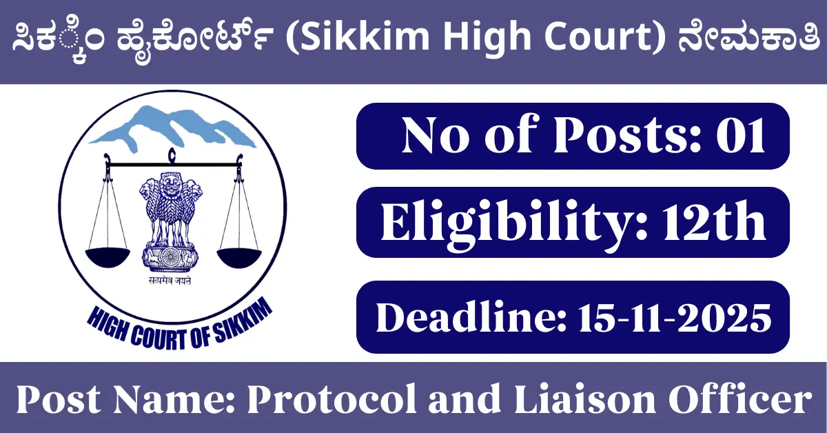 Sikkim High Court Recruitment 2025: Apply for 1 Protocol and Liaison Officer vacancies. Sikkim High Court invited applications from eligible and interested candidates to fill up Protocol and Liaison Officer Posts through Sikkim High Court official notification November 2025. Job seekers who are looking for a career in Gangtok – Sikkim Government can make use of this opportunity. Interested candidates can Apply Offline on or before 15-Nov-2025