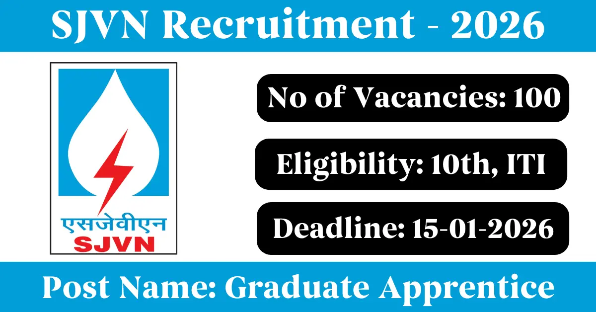 SJVN Recruitment 2026: Apply for 100 Apprentice vacancies. Satluj Jal Vidyut Nigam Limited invited applications from eligible and interested candidates to fill up Apprentice Posts through SJVN official notification December 2025. Job seekers who are looking for a career in Shimla – Himachal Pradesh Government can make use of this opportunity. Interested candidates can Apply Online on or before 15-Jan-2026