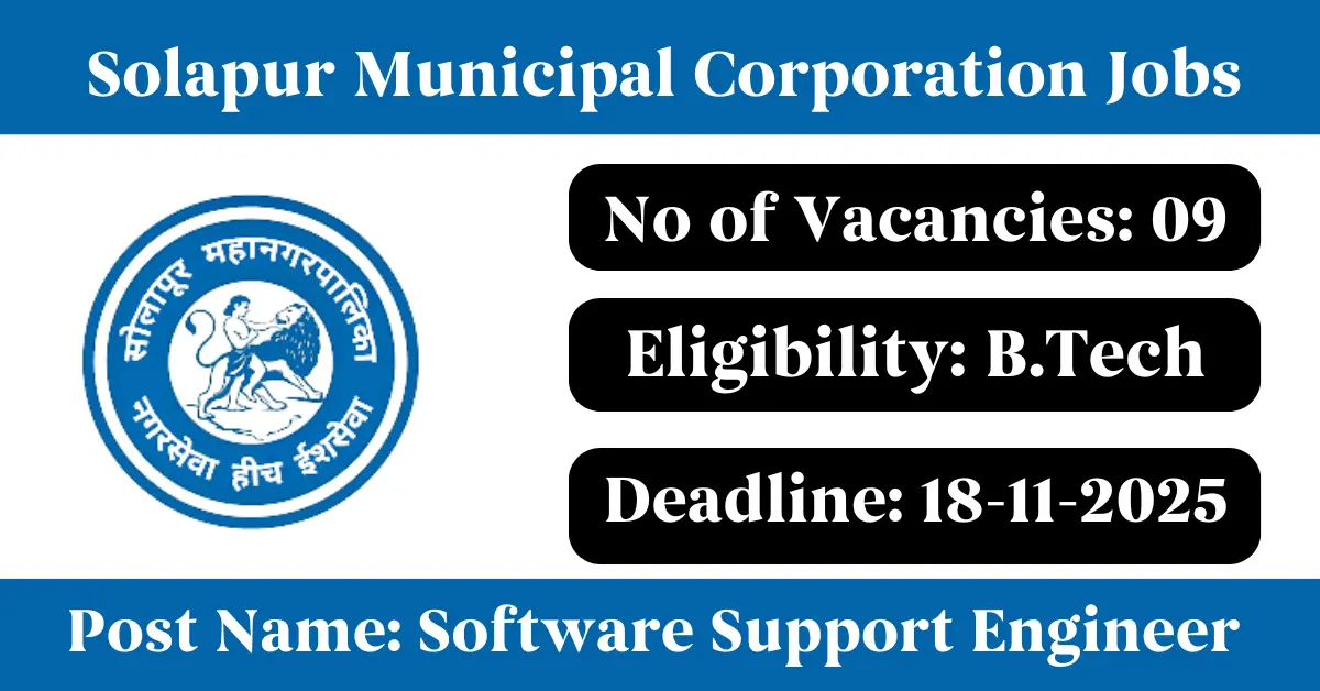 Solapur Municipal Corporation Recruitment 2025: Apply for 9 System Manager vacancies. Solapur Municipal Corporation invited applications from eligible and interested candidates to fill up System Manager Posts through Solapur Municipal Corporation official notification November 2025. Job seekers who are looking for a career in Solapur – Maharashtra Government can make use of this opportunity. Interested candidates can attend for Walk-in-interview on 18-Nov-2025