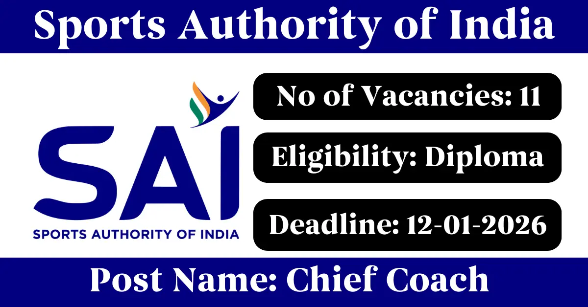Sports Authority of India Recruitment 2025: Apply for 11 Chief Coach vacancies. Sports Authority of India invited applications from eligible and interested candidates to fill up Chief Coach Posts through Sports Authority of India official notification December 2025. Job seekers who are looking for a career in All India Government can make use of this opportunity. Interested candidates can Apply Online on or before 12-Jan-2026