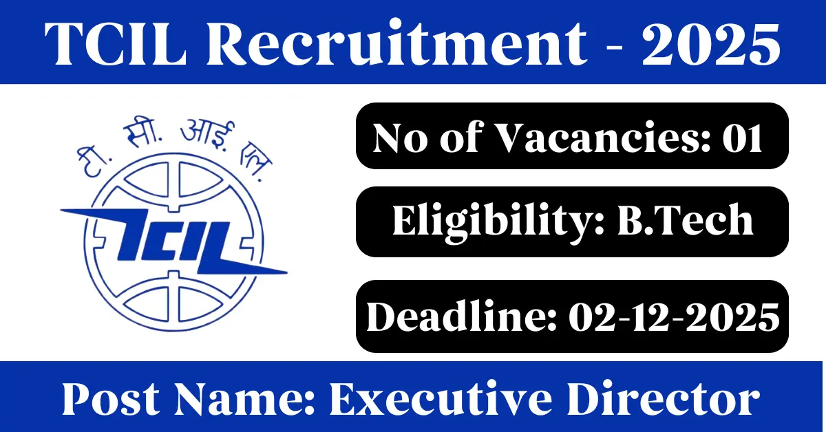 TCIL Recruitment 2025: Apply for 1 Executive Director vacancies. Telecommunications Consultants India Limited invited applications from eligible and interested candidates to fill up Executive Director Posts through TCIL official notification November 2025. Job seekers who are looking for a career in Delhi – New Delhi Government can make use of this opportunity. Interested candidates can Apply Offline on or before 02-Dec-2025