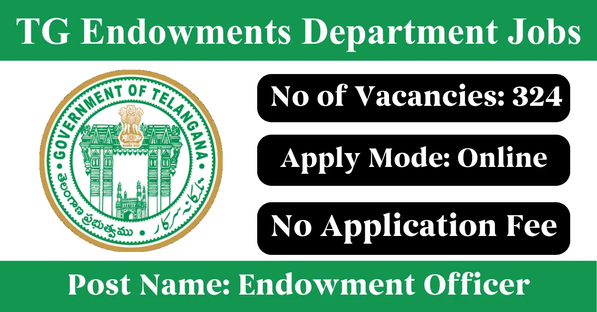 TG Endowments Department Recruitment 2025: Apply for 324 Endowment Officer vacancies. Telangana Endowments Department invited applications from eligible and interested candidates to fill up Endowment Officer Posts through TG Endowments Department official notification November 2025. Job seekers who are looking for a career in Telangana Government can make use of this opportunity. Interested candidates can Apply Online.