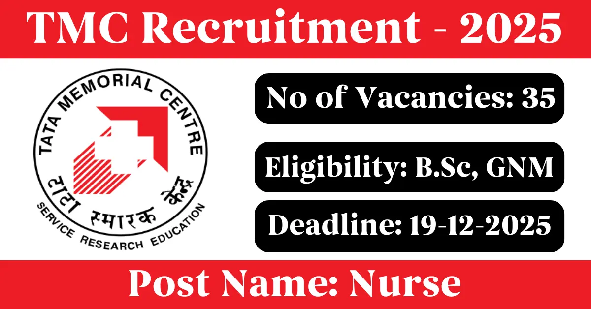 TMC Recruitment 2025: Apply for 35 Nurse vacancies. Tata Memorial Centre invited applications from eligible and interested candidates to fill up Nurse Posts through TMC official notification December 2025. Job seekers who are looking for a career in Varanasi – Uttar Pradesh Government can make use of this opportunity. Interested candidates can attend for Walk-in-interview on 19-Dec-2025