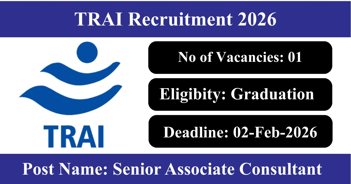 TRAI Recruitment 2026: Apply for 1 Senior Associate Consultant vacancies. Telecom Regulatory Authority of India invited applications from eligible and interested candidates to fill up Senior Associate Consultant Posts through TRAI official notification January 2026. Job seekers who are looking for a career in Delhi – New Delhi Government can make use of this opportunity. Interested candidates can Apply Online on or before 02-Feb-2026