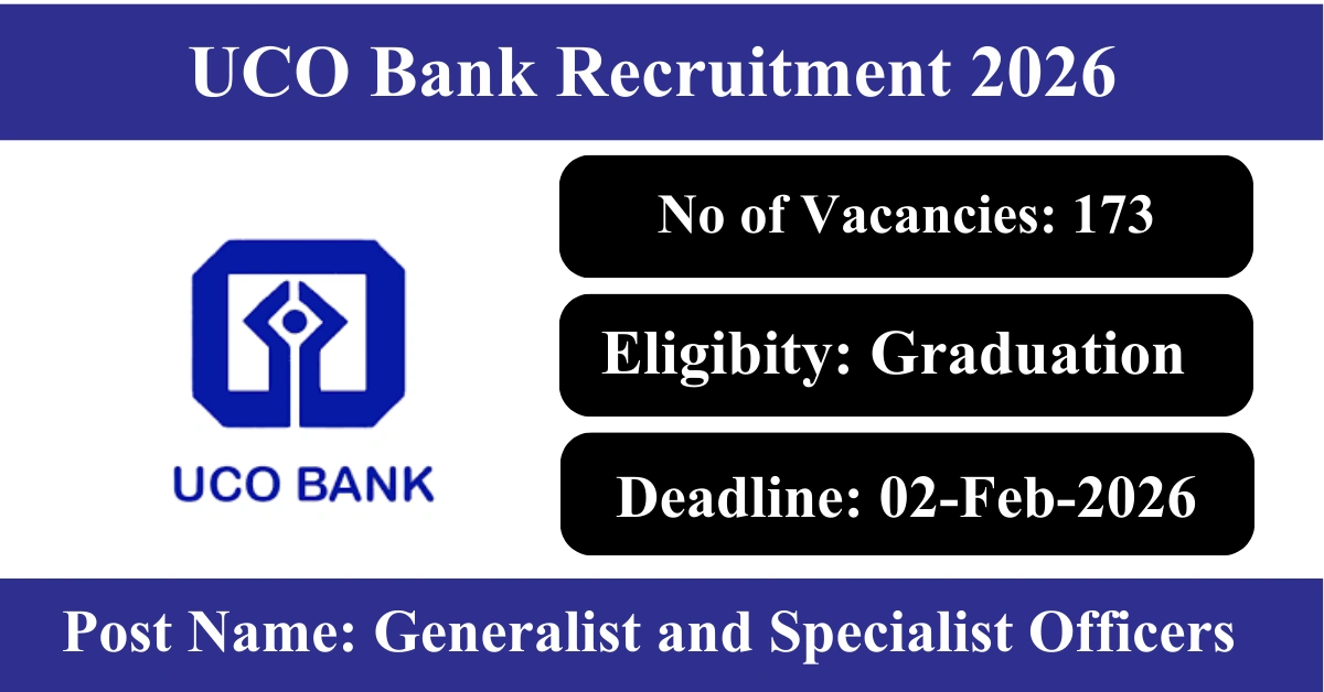 UCO Bank Recruitment 2026: Apply for 173 Generalist and Specialist Officers vacancies. United Commercial Bank invited applications from eligible and interested candidates to fill up Generalist and Specialist Officers Posts through UCO Bank official notification January 2026. Job seekers who are looking for a career in Kolkata – West Bengal Government can make use of this opportunity. Interested candidates can Apply Online on or before 02-Feb-2026