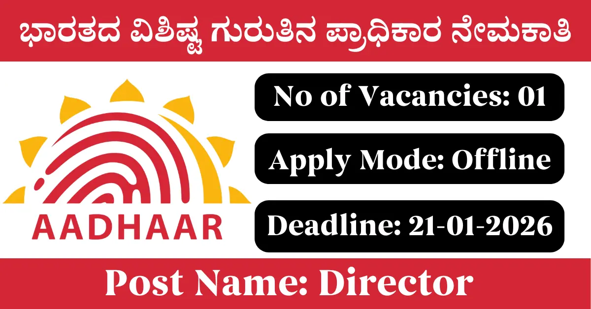 UIDAI Recruitment 2025: Apply for 1 Director vacancies. Unique Identification Authority of India invited applications from eligible and interested candidates to fill up Director Posts through UIDAI official notification December 2025. Job seekers who are looking for a career in Lucknow – Uttar Pradesh Government can make use of this opportunity. Interested candidates can Apply Offline on or before 21-Jan-2026