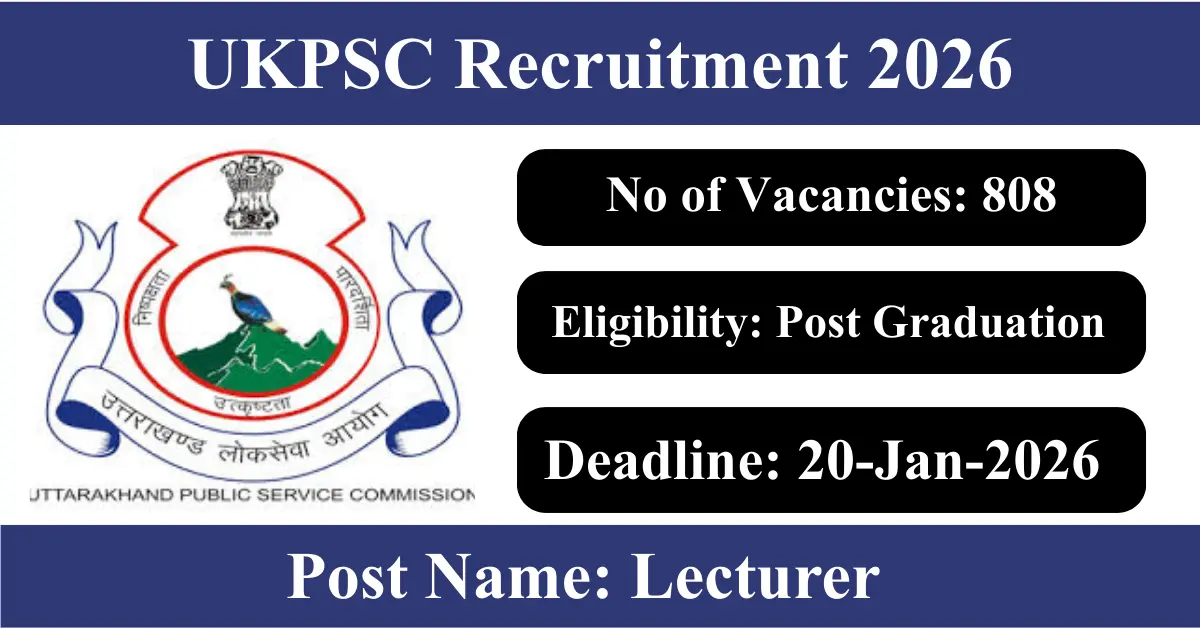 UKPSC Recruitment 2026: Apply for 808 Lecturer vacancies. Uttarakhand Public Service Commission invited applications from eligible and interested candidates to fill up Lecturer Posts through UKPSC official notification December 2025. Job seekers who are looking for a career in Uttarakhand Government can make use of this opportunity. Interested candidates can Apply Online on or before 20-Jan-2026