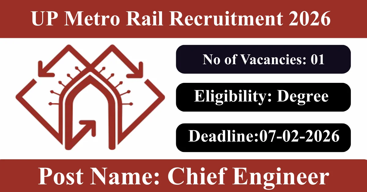 UP Metro Rail Recruitment 2026: Apply for 1 Chief Engineer vacancies. Uttar Pradesh Metro Rail Corporation Ltd invited applications from eligible and interested candidates to fill up Chief Engineer Posts through UP Metro Rail official notification January 2026. Job seekers who are looking for a career in Agra – Uttar Pradesh Government can make use of this opportunity. Interested candidates can Apply Offline on or before 07-Feb-2026