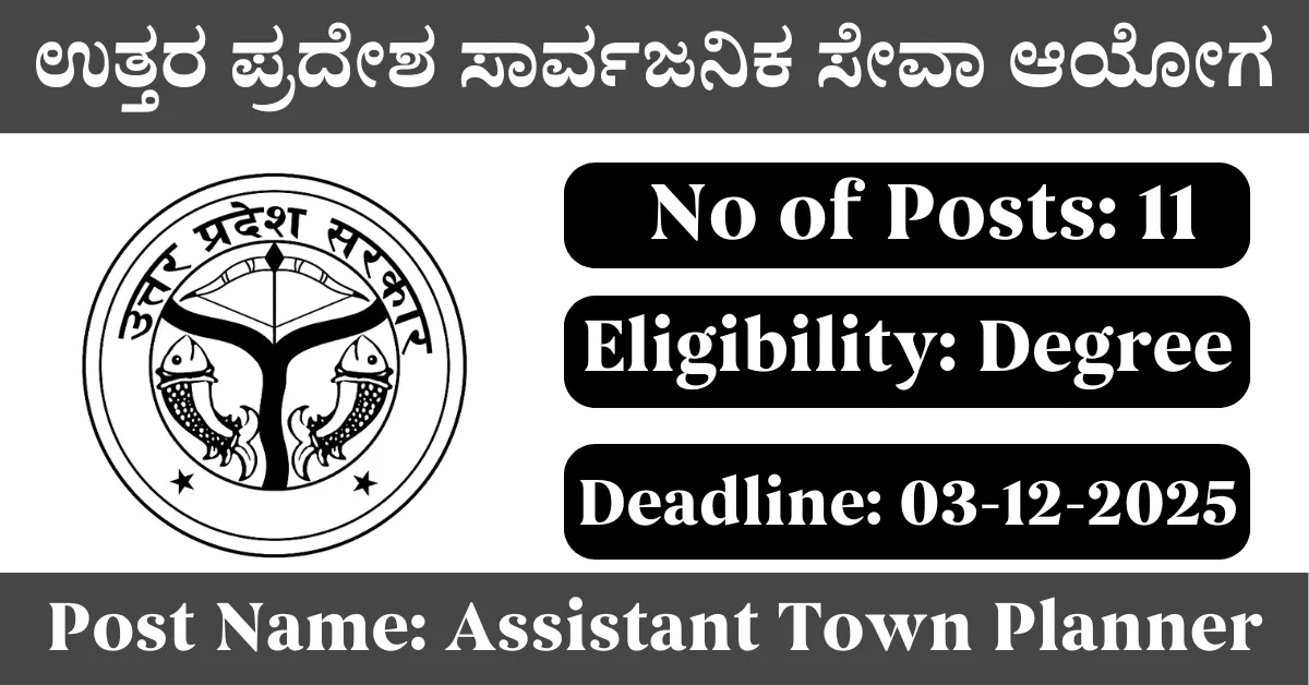 UPPSC Recruitment 2025: Apply for 11 Assistant Town Planner vacancies. Uttar Pradesh Public Service Commission invited applications from eligible and interested candidates to fill up Assistant Town Planner Posts through UPPSC official notification November 2025. Job seekers who are looking for a career in Uttar Pradesh Government can make use of this opportunity. Interested candidates can Apply Online on or before 03-Dec-2025
