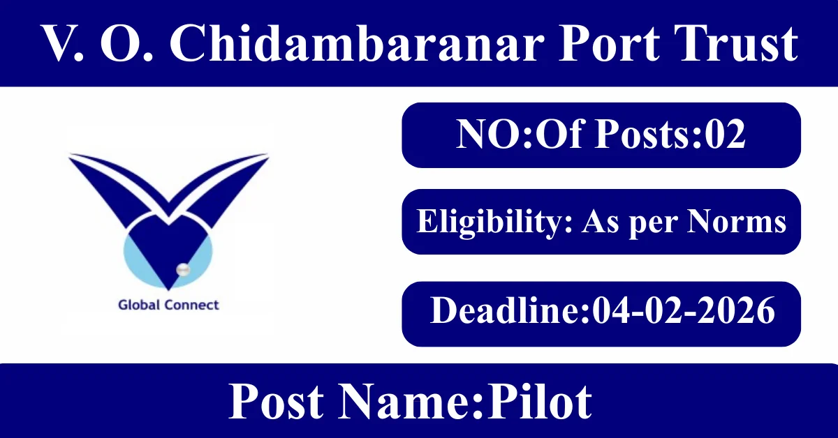 VOC Port Trust Recruitment 2026: Apply for 2 Pilot vacancies. V. O. Chidambaranar Port Trust invited applications from eligible and interested candidates to fill up Pilot Posts through VOC Port Trust official notification January 2026. Job seekers who are looking for a career in Tuticorin – Tamil Nadu Government can make use of this opportunity. Interested candidates can Apply Offline on or before 04-Feb-2026