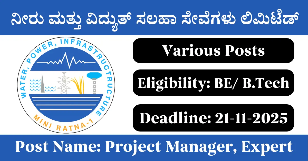 WAPCOS Recruitment 2025: Apply for Various Expert vacancies. Water and Power Consultancy Services Limited invited applications from eligible and interested candidates to fill up Expert Posts through WAPCOS official notification November 2025. Job seekers who are looking for a career in Delhi – New Delhi Government can make use of this opportunity. Interested candidates can send an E-Mail on or before 21-Nov-2025