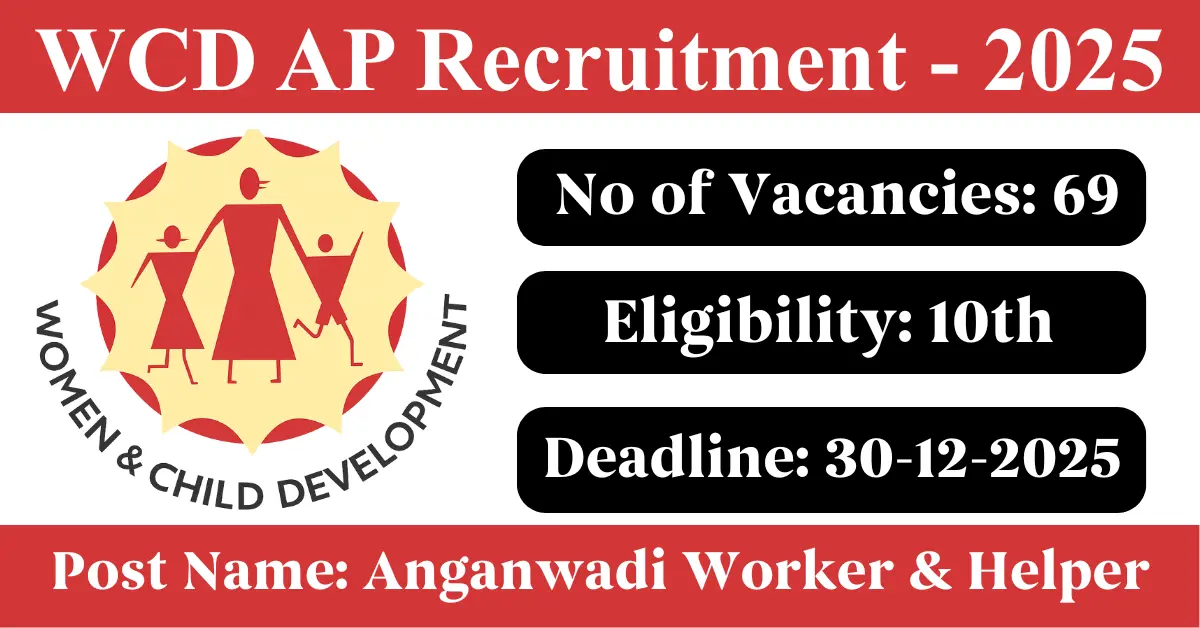 WCD AP Recruitment 2025: Apply for 69 Anganwadi Worker & Helper vacancies. Women and Child Development Andhra Pradesh invited applications from eligible and interested candidates to fill up Anganwadi Worker & Helper Posts through WCD AP official notification December 2025. Job seekers who are looking for a career in Sri Satya Sai District – Andhra Pradesh Government can make use of this opportunity. Interested candidates can Apply Offline on or before 30-Dec-2025
