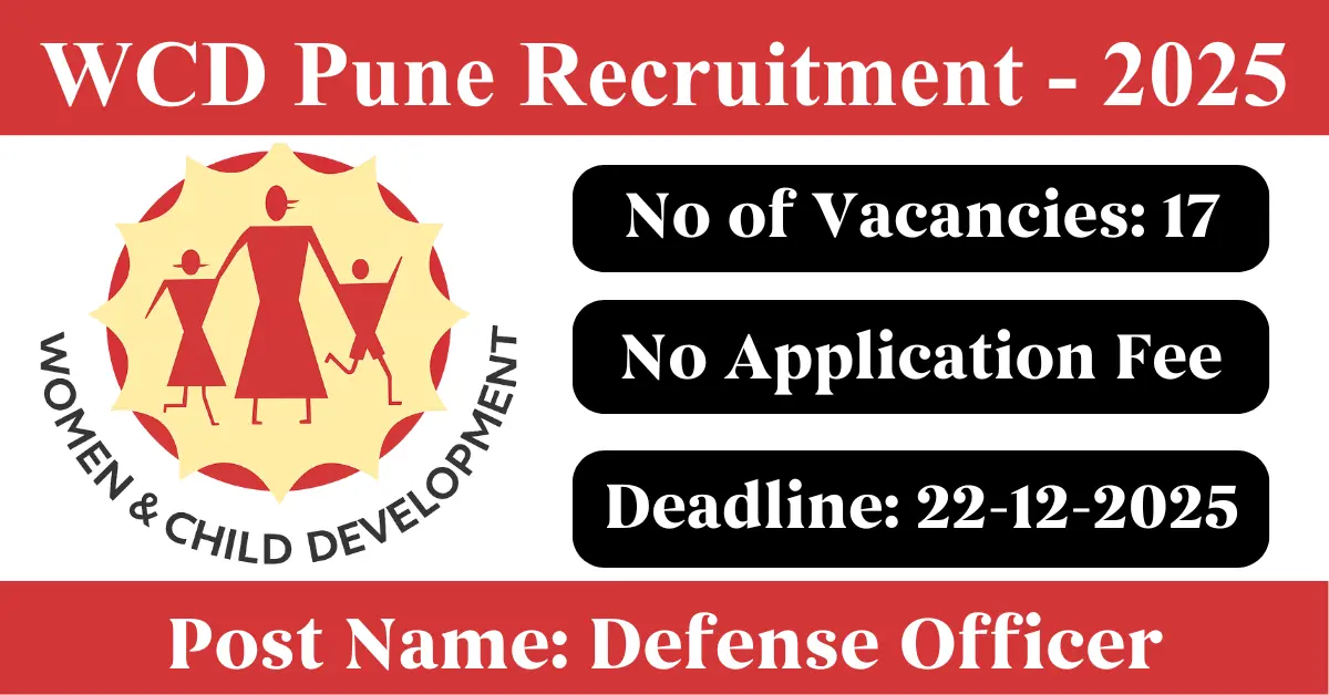 WCD Pune Recruitment 2025: Apply for 17 Defense Officer vacancies. Women and Child Development Department Pune invited applications from eligible and interested candidates to fill up Defense Officer Posts through WCD Pune official notification November 2025. Job seekers who are looking for a career in Pune – Maharashtra Government can make use of this opportunity. Interested candidates can Apply Online on or before 22-Dec-2025