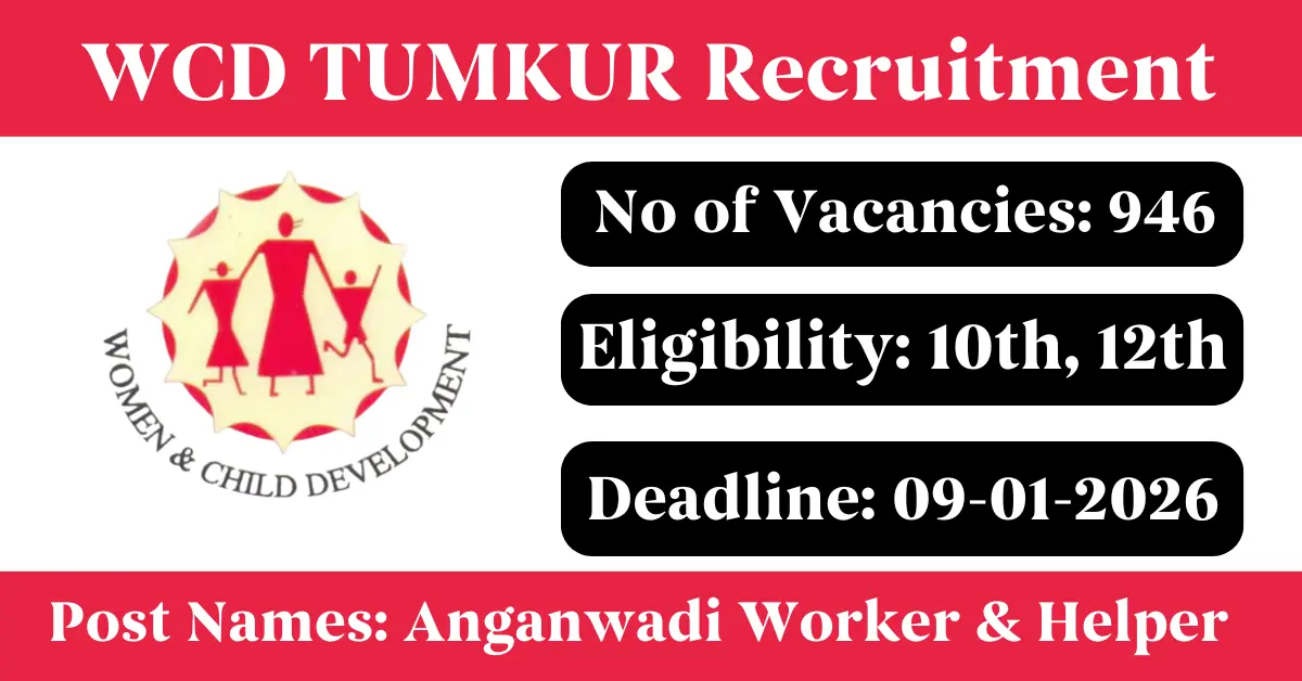 WCD Tumkur Recruitment 2025: Apply for 946 Anganwadi Worker & Helper vacancies. Women and Child Development Department Tumkur invited applications from eligible and interested candidates to fill up Anganwadi Worker & Helper Posts through WCD Tumkur official notification December 2025. Job seekers who are looking for a career in Uttara Kannada – Karnataka Government can make use of this opportunity. Interested candidates can Apply Online on or before 09-01-2026