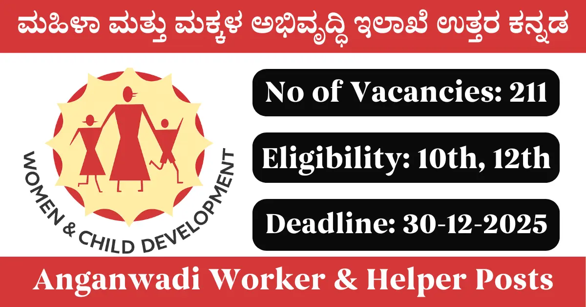 WCD Uttara Kannada Recruitment 2025: Apply for 211 Anganwadi Worker & Helper vacancies. Women and Child Development Department Uttara Kannada invited applications from eligible and interested candidates to fill up Anganwadi Worker & Helper Posts through WCD Uttara Kannada official notification December 2025. Job seekers who are looking for a career in Uttara Kannada – Karnataka Government can make use of this opportunity. Interested candidates can Apply Online on or before 30-Dec-2025