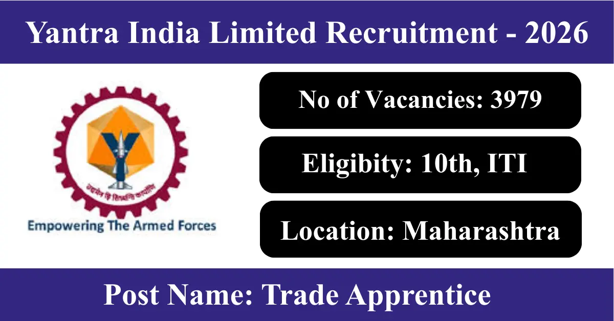 Yantra India Limited Recruitment 2026: Apply for 3979 Trade Apprentice vacancies. Yantra India Limited invited applications from eligible and interested candidates to fill up Trade Apprentice Posts through Yantra India Limited official notification January 2026. Job seekers who are looking for a career in Maharashtra Government can make use of this opportunity. Interested candidates can Apply Online