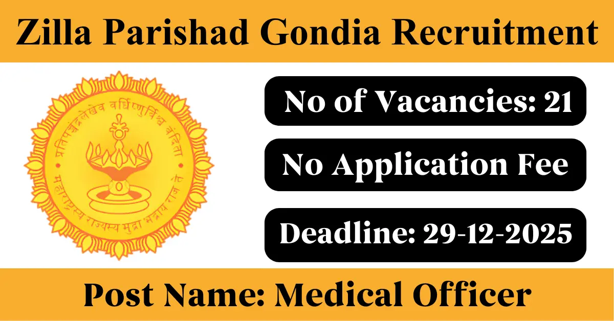 Zilla Parishad Gondia Recruitment 2025: Apply for 21 Medical Officer vacancies. Zilla Parishad Gondia invited applications from eligible and interested candidates to fill up Medical Officer Posts through Zilla Parishad Gondia official notification December 2025. Job seekers who are looking for a career in Gondia – Maharashtra Government can make use of this opportunity. Interested candidates can attend for Walk-in-interview on 29-Dec-2025